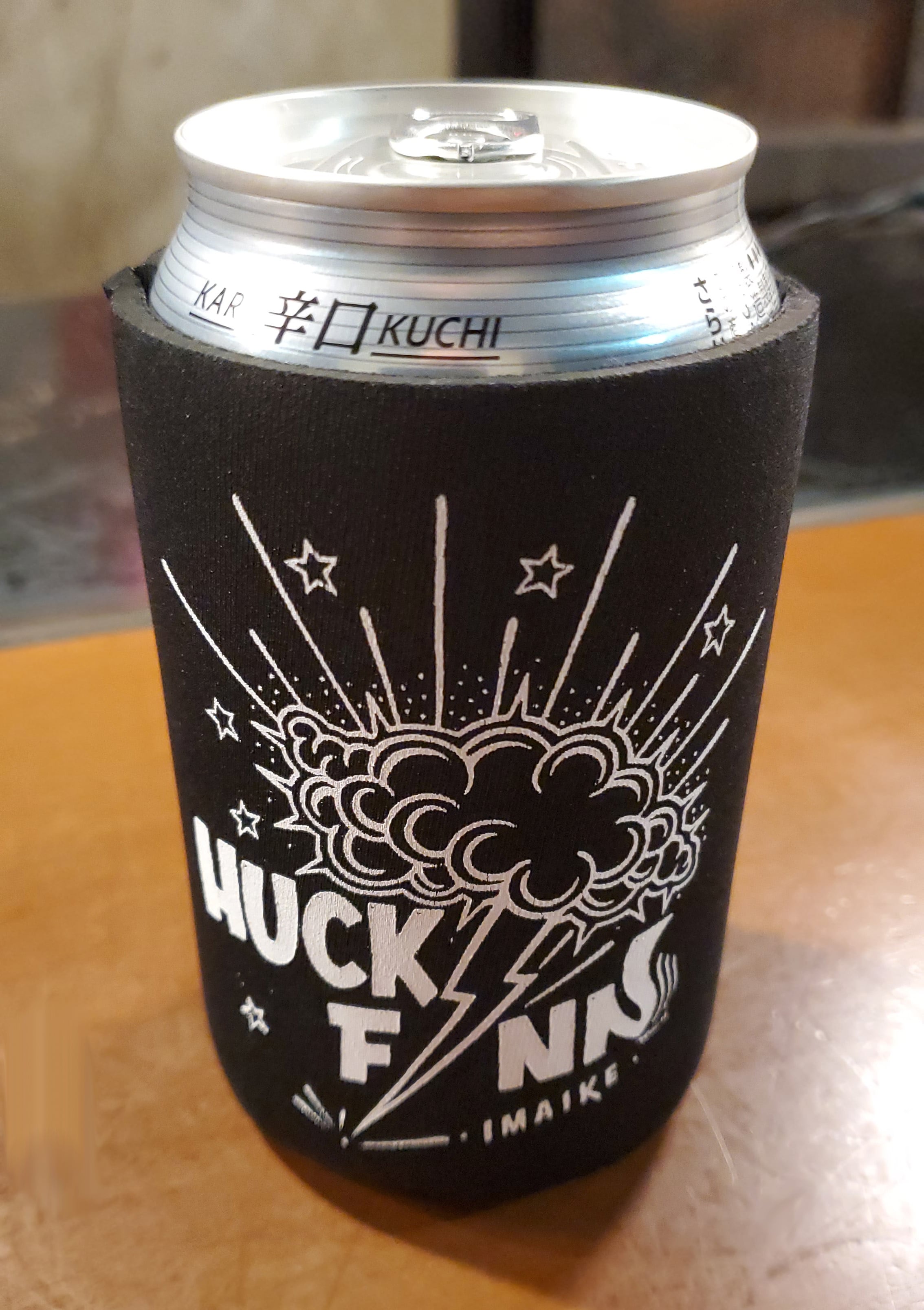 HUCK FINNのクージーができました! こちらはDRINKチケット付になります。 このクージーはKOOZIE JAPANに製作して頂きました。